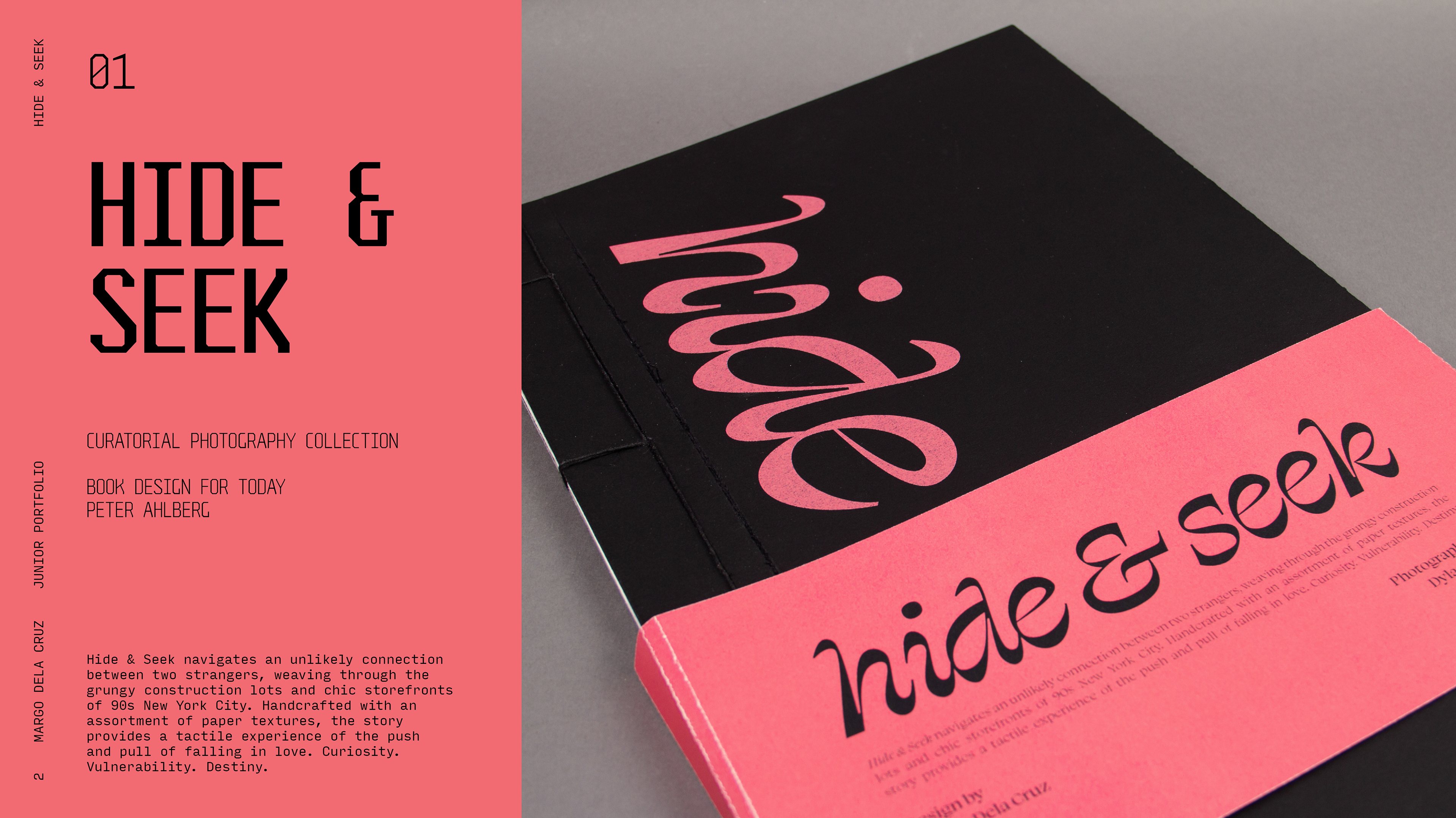 Hide & Seek navigates an unlikely connection between two strangers, weaving through the grungy construction lots and chic storefronts of 90s New York City. Handcrafted with an assortment of paper textures, the story provides a tactile experience of the push and pull of falling in love. Curiosity. Vulnerability. Destiny.